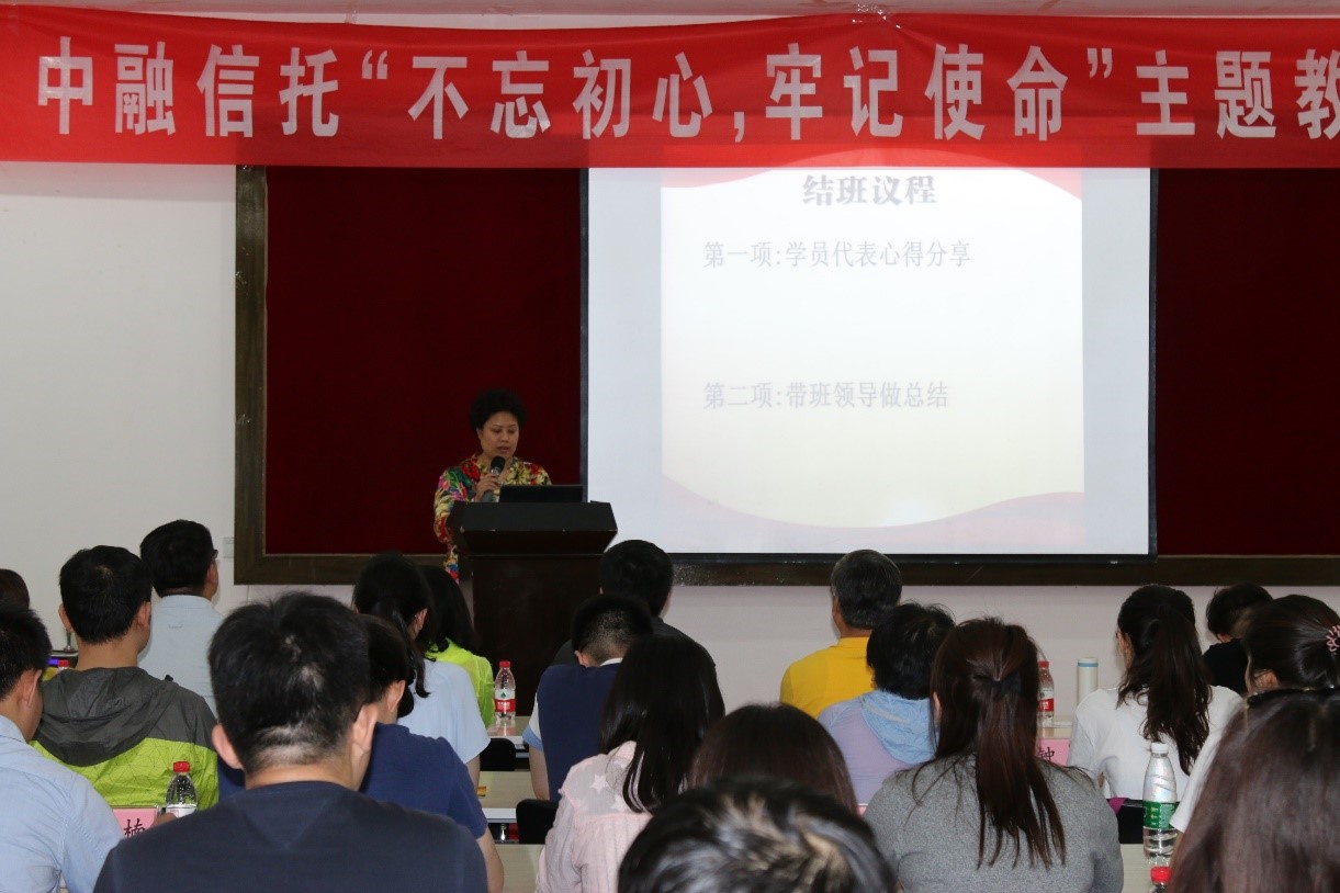 结班仪式上,五位参训代表分享了心得体会。党委副书记、纪委书记张文同志作了总结发言,她指出,身为中融人,应当为中融厚重的发展历史而骄傲,为身在这个优秀企业而自豪。公司的健康稳定发展离不开党的正确引导,党建工作只能加强,不能削弱,以抓党建工作促进业务发展。希望广大党员同志们进一步加强思想学习,提高政治站位,增强担当意识,激发先锋引领作用,用永远传承的红色革命精神带领中融在新时期转型发展中取得更大进步!