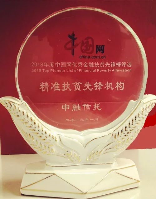 日前,由中国互联网新闻中心 (以下称“中国网”)主办的2018年度“中国网之优秀金融扶贫先锋榜”评选活动圆满结束,经过多轮线上投票和业内专家、学者的专业评审,"中国网之优秀金融扶贫先锋榜"榜单正式出炉,中融信托成功入选,并荣获“精准扶贫先锋机构”称号。