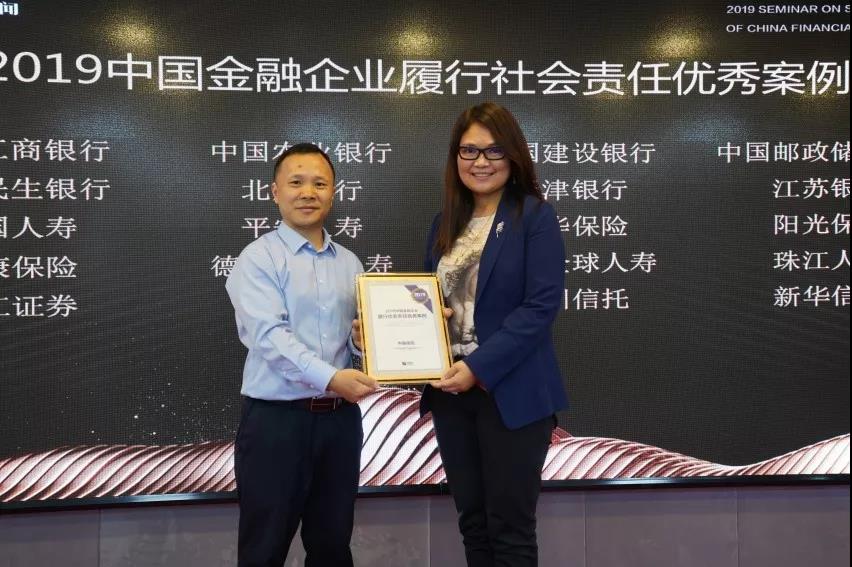 4月26日,《每日经济新闻》在京主办“2019中国金融业社会责任研讨会”,重磅发布《中国金融企业社会责任白皮书》,并对“2019中国金融企业履行社会责任优秀案例”进行了授牌。中融信托社会责任案例入选优秀案例,并在活动现场获得授牌。