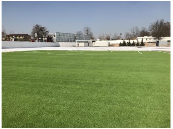 这块足球场长70米,宽37米,有着崭新漂亮的球门和绿茵茵的草坪。